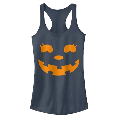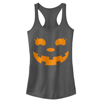 Junior’s CHIN UP Halloween Jack O’ Lantern Face Racerback Tank Top