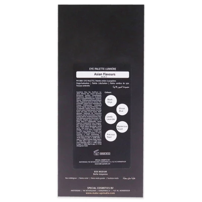 Make-Up Studio Eyeshadow Lumiere Palette is baked and highly pigmented and is very suitable as an eyeshadow or as highlights for the inner corner of the eye for an extra sparkling look. This product is vegan, meaning that no animal by products are used and it is not tested on animals. Apply the eyeshadow wet for an even more intense color. You can also use the Make-up Fixer on your brush for the application.
