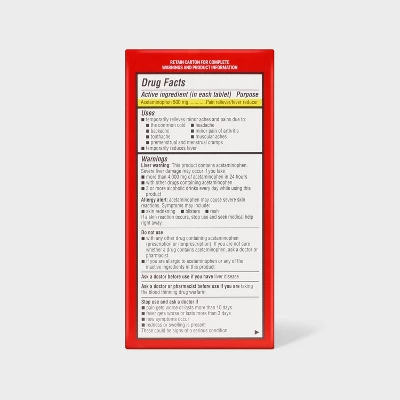 Whether you’re coming down with a cold or have a sudden headache, get through your day a little easier with help from Acetaminophen Pain Relief Coated Tablets from up&up™. These extra-strength tablets feature 500mg of pain relief to help ease minor aches and pains due to headaches, backaches, toothaches, the common cold, muscular aches and more.