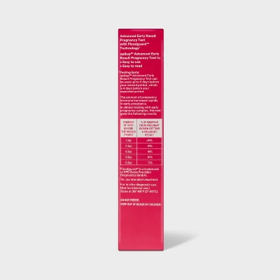 The up&up™ Advanced Early Result Pregnancy Test with Floodguard™ Technology3 is our most advanced test, designed for you with a longer handle and wider wick4. This test can be used up to 5 days before your missed period, which is 4 days before your expected period. The advanced early result pregnancy test is easy-to-use and easy-to-read, so you won’t have to question if you’re pregnant or not. If you want to double check, this pack includes three tests, so you can test again next month or confirm a positive or negative result. Simply hold the absorbent tip in your urine stream for 5 seconds and in just two minutes, you’ll have a clear result. Please read product insert before taking the test.