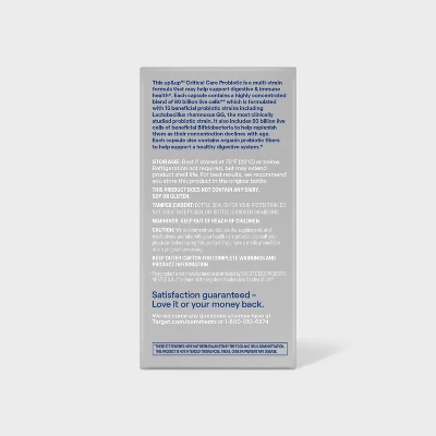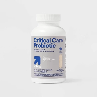 Support your immune health with the 30-Count Critical Care Probiotic from up&up™. This pack of 30 delayed-release capsules are formulated with 15 probiotic strains. Suggested for ages 18 and above, this probiotic dietary supplement helps promote digestive system balance.