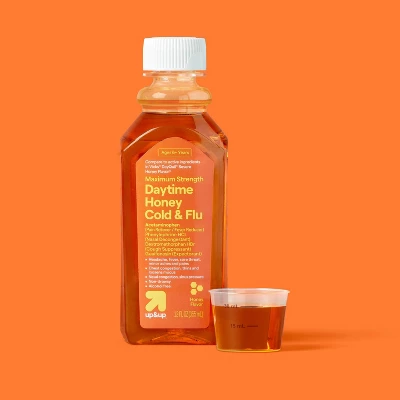 Help relieve cold and flu symptoms with Daytime Honey Cold & Flu from up&up™. This liquid medicine contains a pain reliever/fever reducer, nasal decongestant, cough suppressant and an expectorant. This maximum-strength treatment comes in an alcohol-free, non-drowsy formula and the honey flavor gives it a sweet taste.