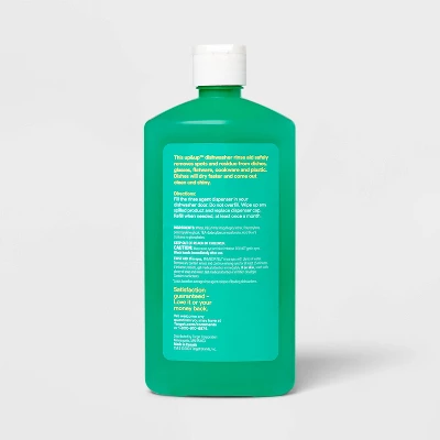 Ensure your dishes come out of the dishwasher dry and unmarked with this Dishwasher Rinse Aid from up&up™. This rinse aid helps prevent spotting and leaves dishes 100% drier than detergent alone. A must-have addition to your kitchen essentials, the 16-fluid-ounce bottle is good for approximately 150 loads.