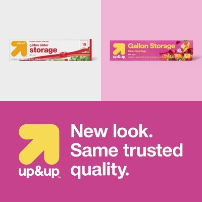 Keep food items fresh and full of taste with the Slider Gallon Storage Bags from up&up™. This handy pack of gallon-sized freezer bags offers you a convenient way to store a variety of items and lets you enjoy your favorite foods again after the meal. Made from BPA-free plastic for good food safety, these ready-to-use bags come with a slide zipper seal to keep food fresh and secure for longer. Perfect to store and organize just about anything from sandwiches to tasty snacks to freezer meals and party leftovers and more, these multipurpose storage bags make for practical use in your busy kitchen or when on the go. 100% Satisfaction Guaranteed.
