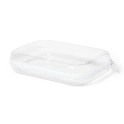 Keep your pens and pencils within reach with this Hardside Zipper Pencil Case from up&up™. This hardside pencil case features a single zippered compartment to organize and carry pens, pencils, small paint brushes and more. The compact design fits easily in a backpack or purse, while the zip closure helps keep the items safe and easily contained. Showcasing a clear design with a gray tint and black zipper, it’s sure to bring classic style to your school supplies.