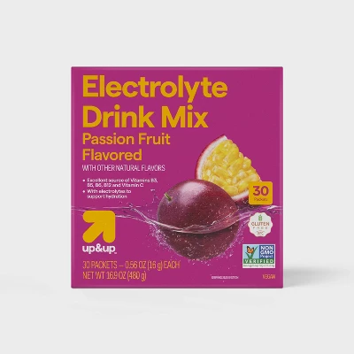 Indulge in fruity flavor while maintaining hydration and getting some vitamins with the Hydration with Electrolytes Drink Mix from up&up™. This electrolyte drink mix comes in a passion fruit flavor with other natural flavors. Gluten free and vegan, these 20 drink mix packets are an excellent source of vitamins B3, B5, B6, B12 and C.
