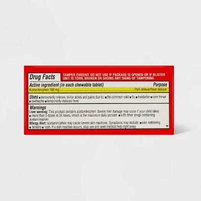 - Compare to the active ingredient in Children’s Tylenol Chewables