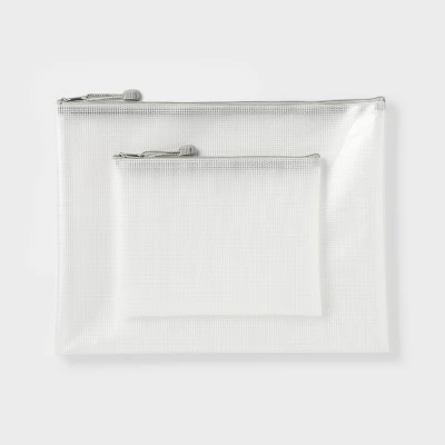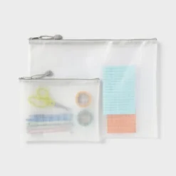Store your legal documents and accessories safely with the 2-Pack of Legal- and Accessory-Size Zip Pouches from up&up™. This pack of two pouches features a see-through design to make it easy to see the contents inside. Made of plastic, these pouches have zipper closures to help keep their contents nicely contained.