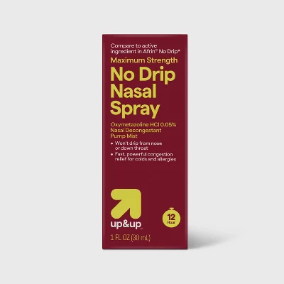 Compare to Afrin No Drip active ingredient. No Drip Nasal Spray, Oxymetazoline HCl, provides fast, powerful congestion relief in a pump mist. This nasal decongestant won’t drip from your nose or down your throat. Get soothing, maximum strength relief of nasal and sinus congestion and sinus pressure due to the common cold, hay fever and upper respiratory allergies. This nasal mist contains Oxymetazoline HCl, the number one doctor recommended adult nasal spray active ingredient, of U.S. physicians surveyed by an independent market research firm. In original formula, this nose spray shrinks nasal membranes so you can breathe more freely. Safety Sealed. This product is gluten free.