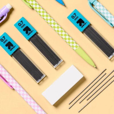 You get a bonus eraser with this pack of 90-Count Pencil Lead Refills and Eraser from up&up™. The 0.7 mm mechanical pencil lead refills and eraser includes 90 lead refills, and they come in three convenient containers with lids for easy packing in your pencil pouch or backpack. These lead replacements are compatible with most 0.7 mm refillable pencils. The included eraser simplifies writing and creative tasks while also allowing you to fine-tune them to your preferences.