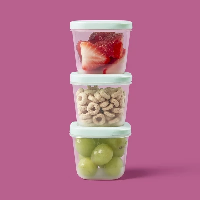 You’ll be all set for snack time at home or on the go with the 4-Pack Mini Square Half-Cup Food Storage Containers from up&up™. Designed in a square shape, this plastic food storage container set comes with easy-open lids to help keep the contents nicely contained. Plus, they’re freezer safe, dishwasher safe on the top rack and microwave safe without the lid for reheating of food.