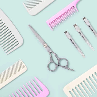 Trim your hair or tackle a variety of haircuts with the Barber Shears + Sharpener Hair Styling Scissors from up&up™. These scissors feature a stainless steel construction with sharp blades for a salon-style hair cut. Plus, the ergonomic grip allows for easy, comfortable use.