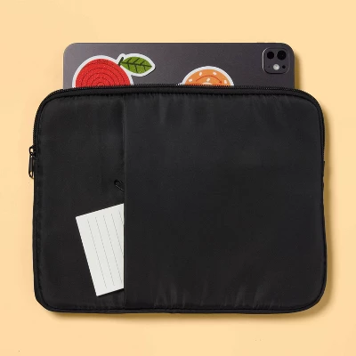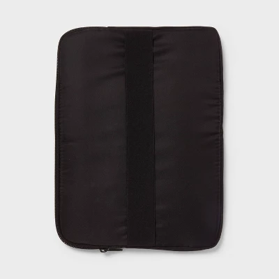 Keep your tablet safe at home or during travel with the Tablet Pouch with Elastic Band from up&up™. This tablet pouch is made of fabric and has an elastic band for easy attachment to any bag. Plus, it has a zipper closure to help keep the tablet secured and an outer zip pocket to store chargers, headphones, small stationery and more.