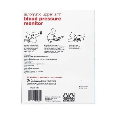 Easily watch your blood pressure at home with the Upper Arm Blood Pressure Monitor from up & up™. You’ll be happy with the clinically accurate readings given by the blood pressure monitor so you know you can trust the information on the screen. When your doctor needs you to look after your blood pressure or when you just want to keep track of your well-being, use the one-touch blood pressure monitor that can log in the memory bank up to 60 readings each for up to two people. The heart monitor built within the blood pressure kit has a hypertension indicator and has irregular heartbeat detection to keep you in the know. It even comes with the necessary batteries so you can use it right out of the box.