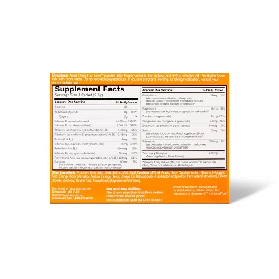 If you’re looking to boost your immune system, you can rely on 30-Count Vitamin C + D Immune Support Powder from up & up™ to help. The caffeine-free fizzy drink mix can be easily added to water, orange juice or your chosen beverage to provide you with 1,000 milligrams of vitamin C and 1,000 international units of vitamin D, along with seven B vitamins, antioxidants and electrolytes. Plus, you’ll love that it has a natural orange flavor.